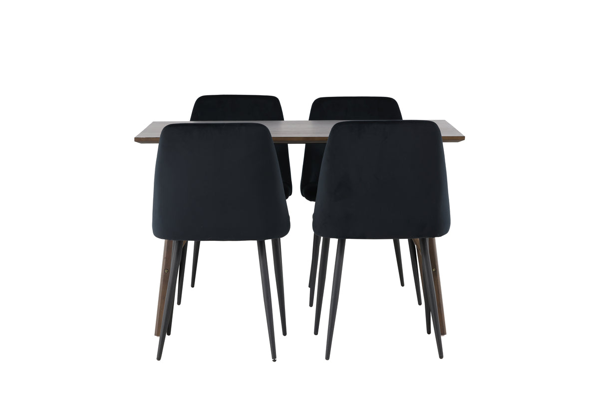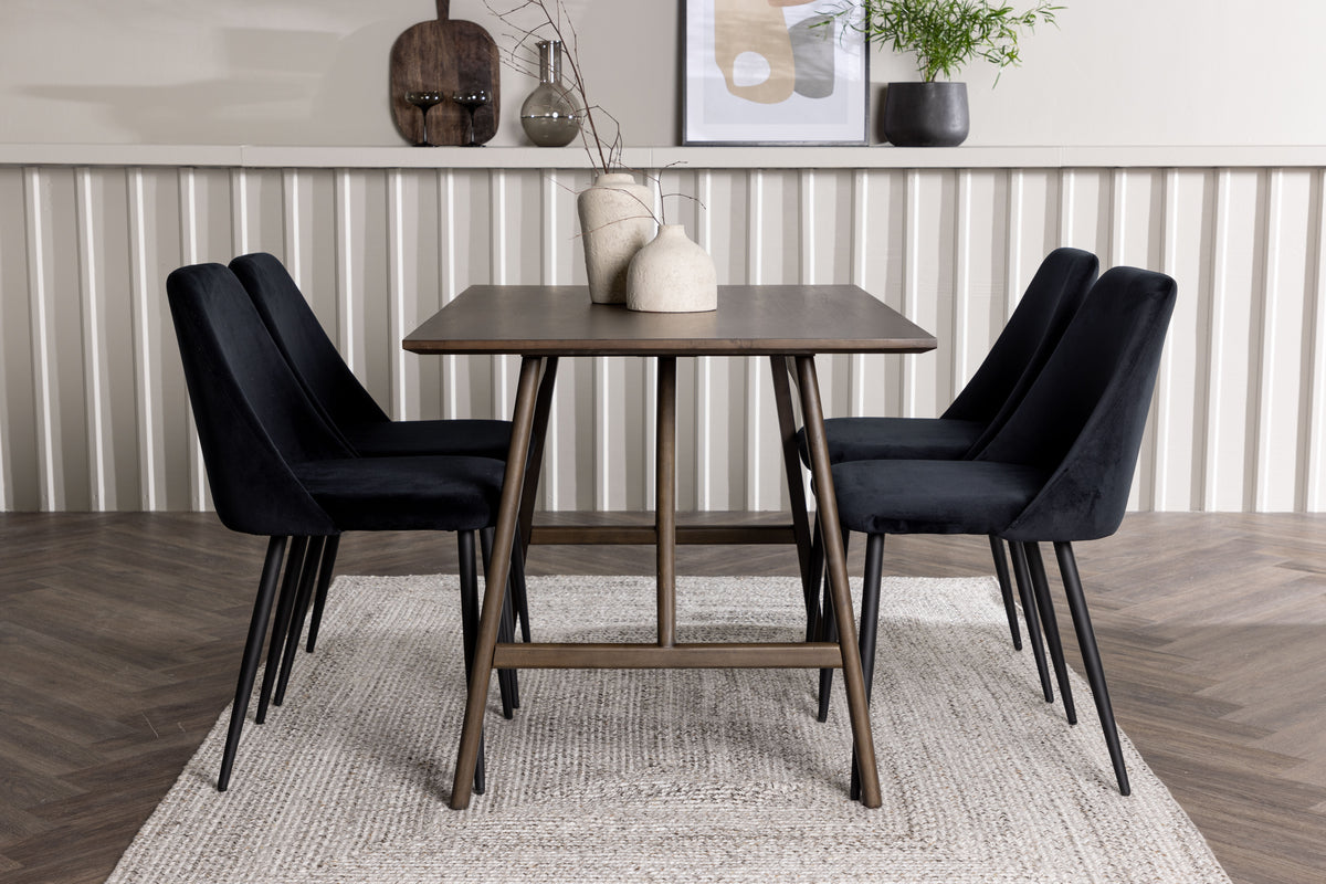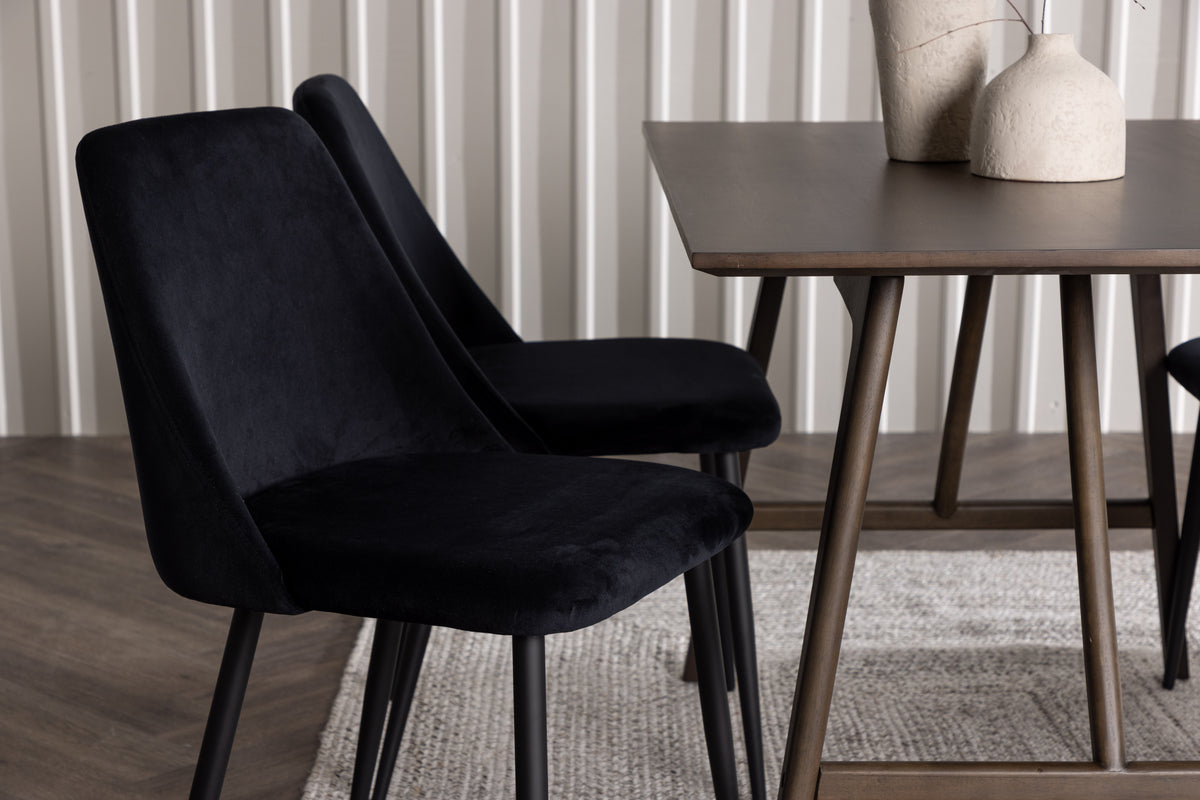 Till det bruna bordet Kaseidon matchas de svarta matstolarna från serien Night. Med en helklädd sits i mjukt svart sammetstyg och stolsben i en matchande svart kulör, ger Night-stolen en omedelbar touch av lyx till ditt rum. Den erbjuder inte bara en elegant design, utan också fantastisk komfort som man inte skämtar bort.
