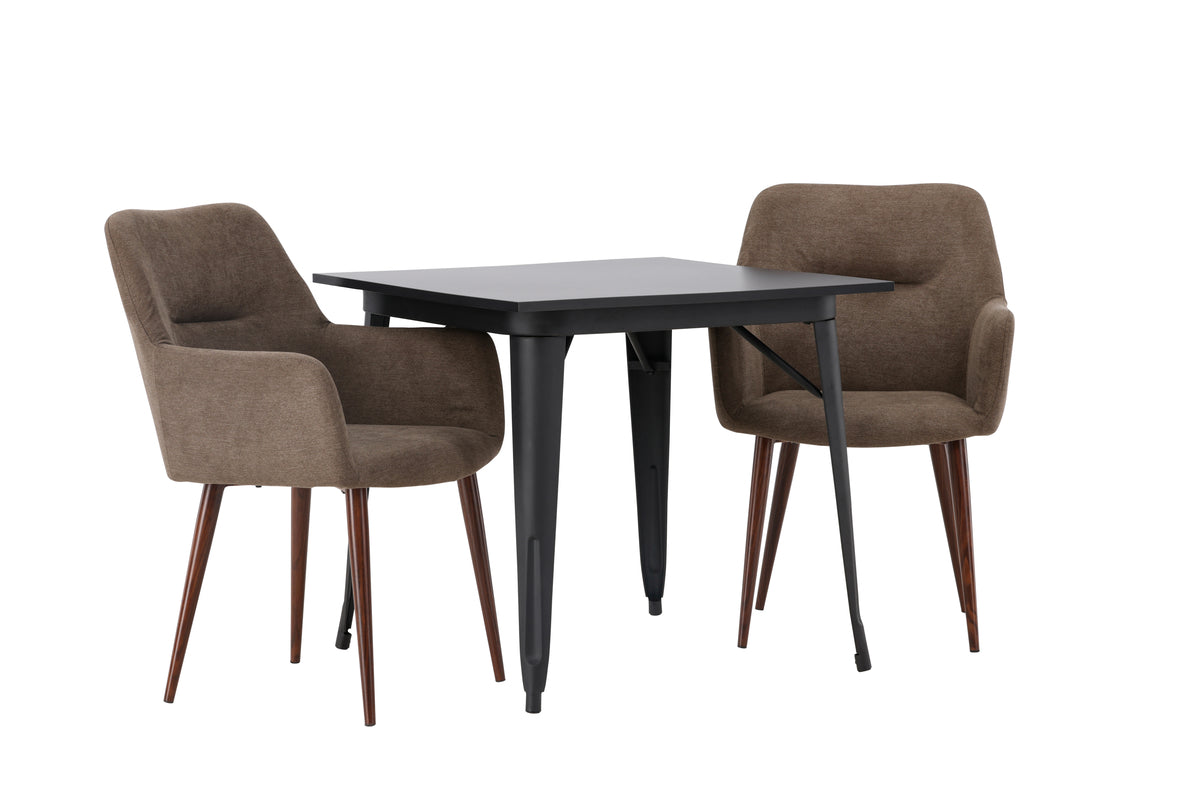 Tempe & Tomorrow Rektangulära Matbord 80 x 80 Svart + Matstol 2-pack Brun
