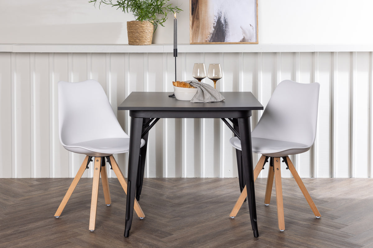 Tempe & Zeno Rektangulära Matbord 80 x 80 Svart + Matstol 2-pack Vit