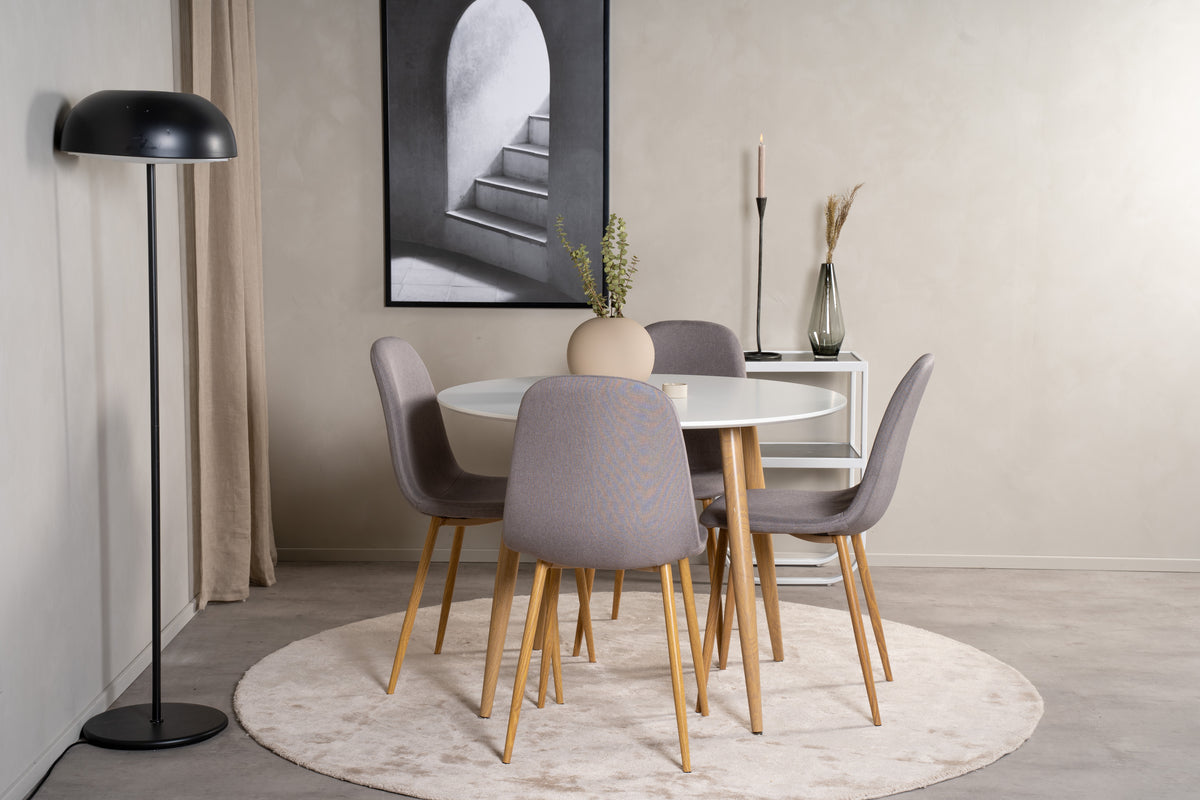 En rund matgrupp ger en social samtalsmiljö där alla blir delaktiga. Med Polar matstolar i en snygg grå färg tillsammans med Plaza matbord får du en matgrupp som är lika tidlös som bekävm.