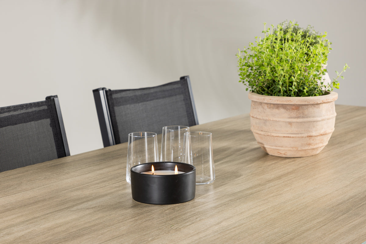 Copacabana-stolarna är också tillverkade av aluminium och har en djup svart färg som ger en kontrastrik och modern estetik till din utemiljö. Deras eleganta design och bekväma sittplatser gör dem perfekta för avkopplande måltider eller sociala sammankomster utomhus.