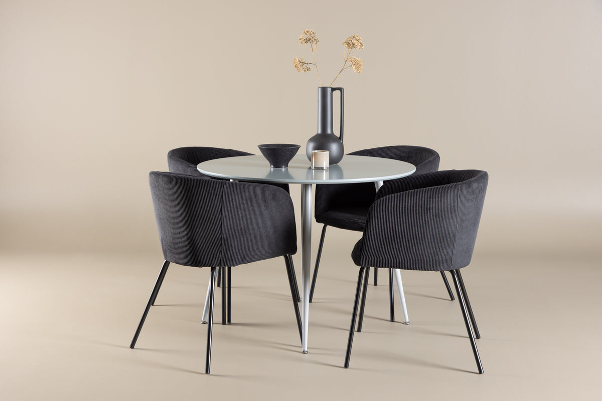 Plaza & Berit Runda Matbord ⌀100 Grå + Matstol Svart