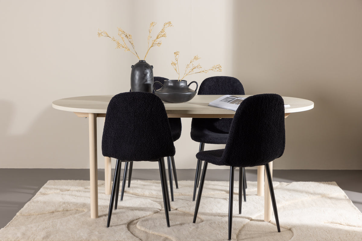 Polar & Andy Matstol 2-pack Svart + Ovala Matbord 180 x 90 Vitputsad