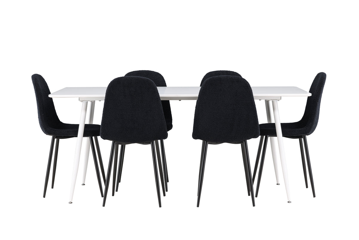 Polar & Silar Matstol 2-pack Svart + Rektangulärt Matbord 180 x 90 Vit