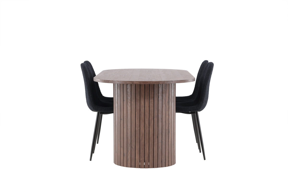Upptäck Polar matstolen och Härön matbordet - den perfekta kombinationen av modern elegans och gemenskap för ditt matsalsarrangemang. Stolen är FSC®-certifierad (FSC®C177288) vilket innebär att den består av trä som kommer från ett ansvarsfullt skogsbruk, ett skogsbruk som tar hänsyn till människor och miljö. Polar matstolen erbjuder en stilfull och samtida touch. Stolens djupa svarta färg och material av polyester teddy ger en exklusiv känsla och erbjuder en bekväm sittupplevelse för alla dina middagar och sammankomster. Dess moderna design och rena linjer ger en tidlös estetik som kompletterar alla inredningsstilar. Polar matstolens ben är tillverkade av svart stål, vilket ger en stadig och robust konstruktion samtidigt som det bidrar till dess eleganta utseende. Med dess enkelhet och mångsidighet kommer Polar att vara ett välkommet tillskott till ditt hem.