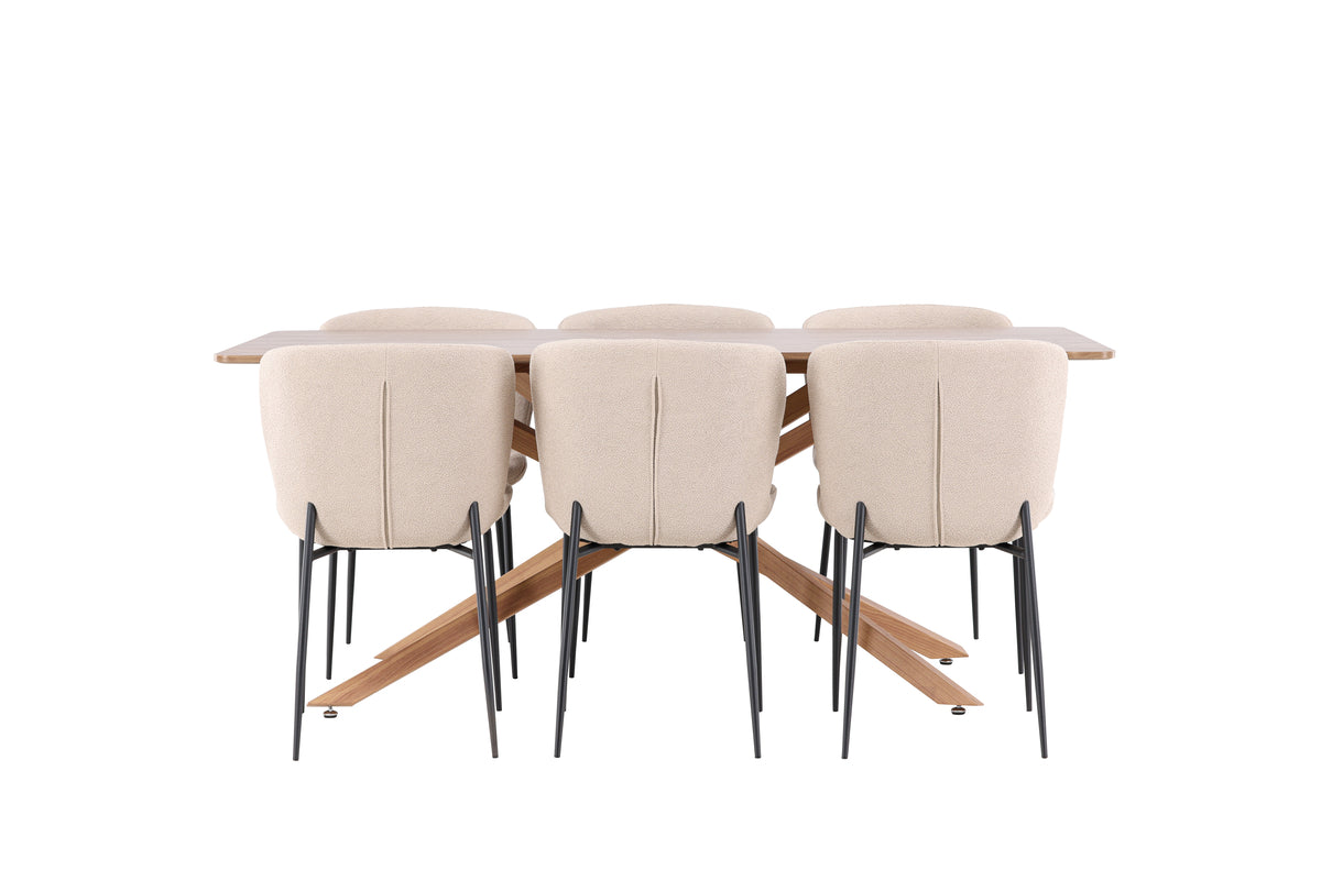 Modesto & Piazza Matstol 2-pack Beige + Rektangulära Matbord 180 x 90 Mocka