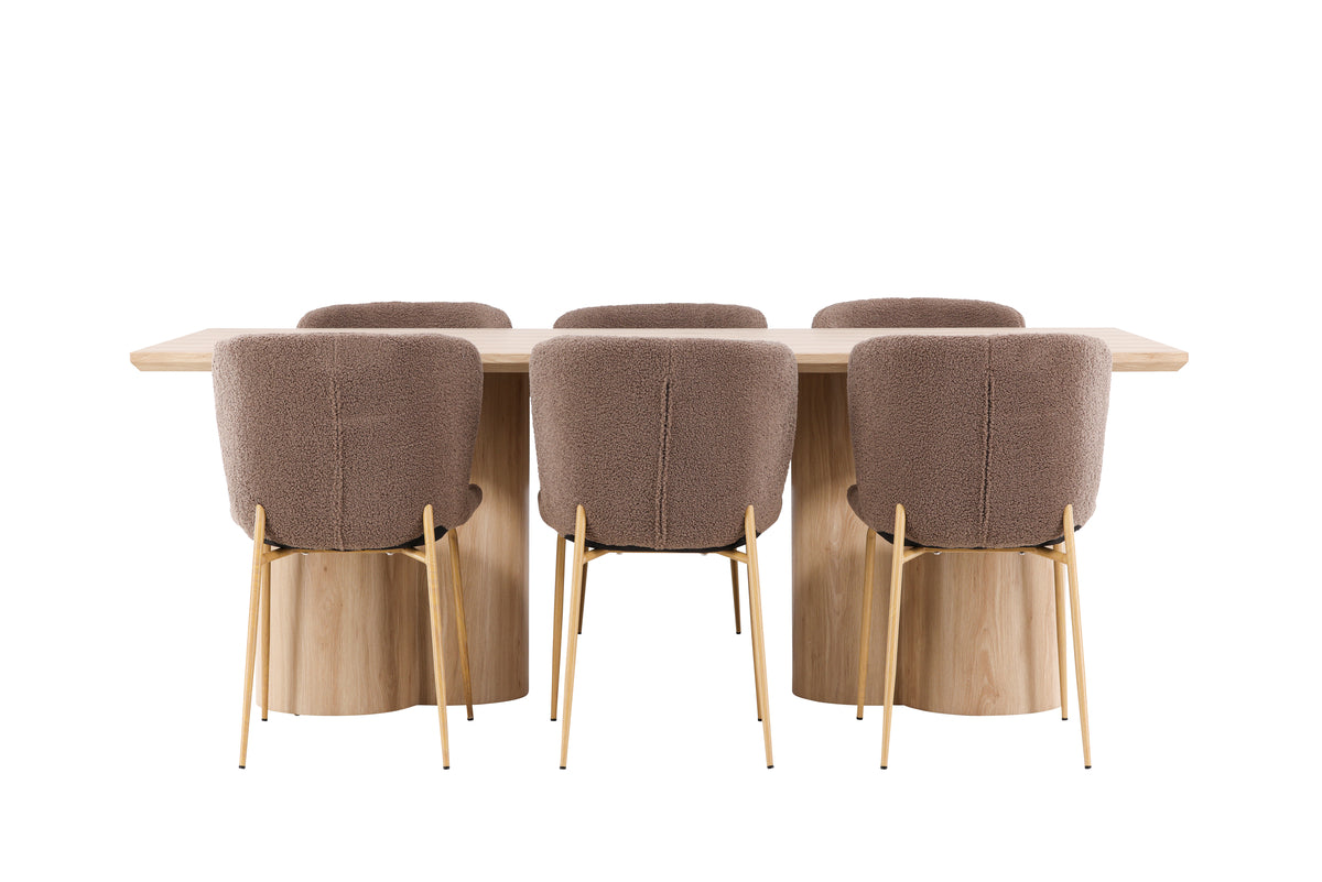 Modesto & Olivia Matstol 2-pack Brun + Rektangulära Matbord 210 x 100 Natur