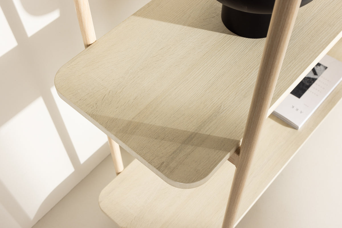 Den smala stålramen som bär upp avlastningsbordet bidrar med minimalism till blickfånget och är i en varm kulör. De tre hyllplanen med rundade kanter ger dig gott om utrymme att stolt visa upp dina favoritdekorationer, böcker och växter. Här kan du verkligen låta din kreativitet flöda genom att dekorera detta avlastningsbord på ett sätt som speglar din personlighet. Skapa en rogivande atmosfär med vackra ljusstakar och gröna växter, eller visa upp din intellektuella sida med noggrant utvalda böcker. Oavsett vad du väljer kommer bordet att bära med sig en känsla av balans och ordning. Kan det bli bättre än såhär?