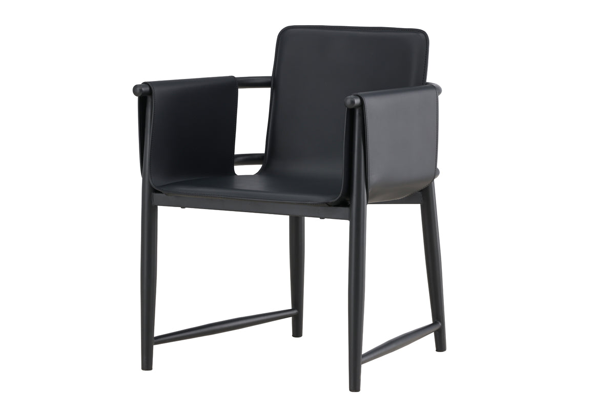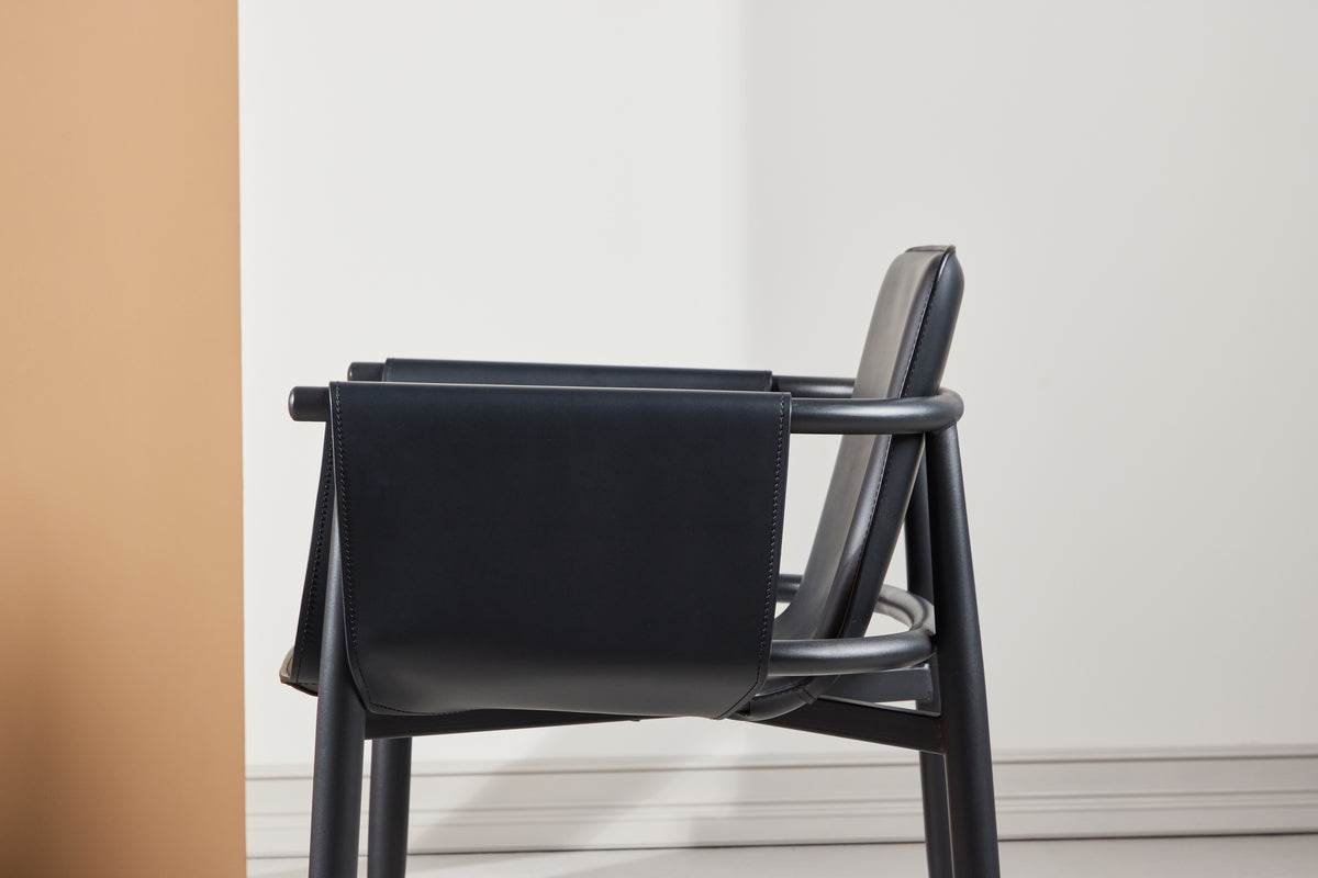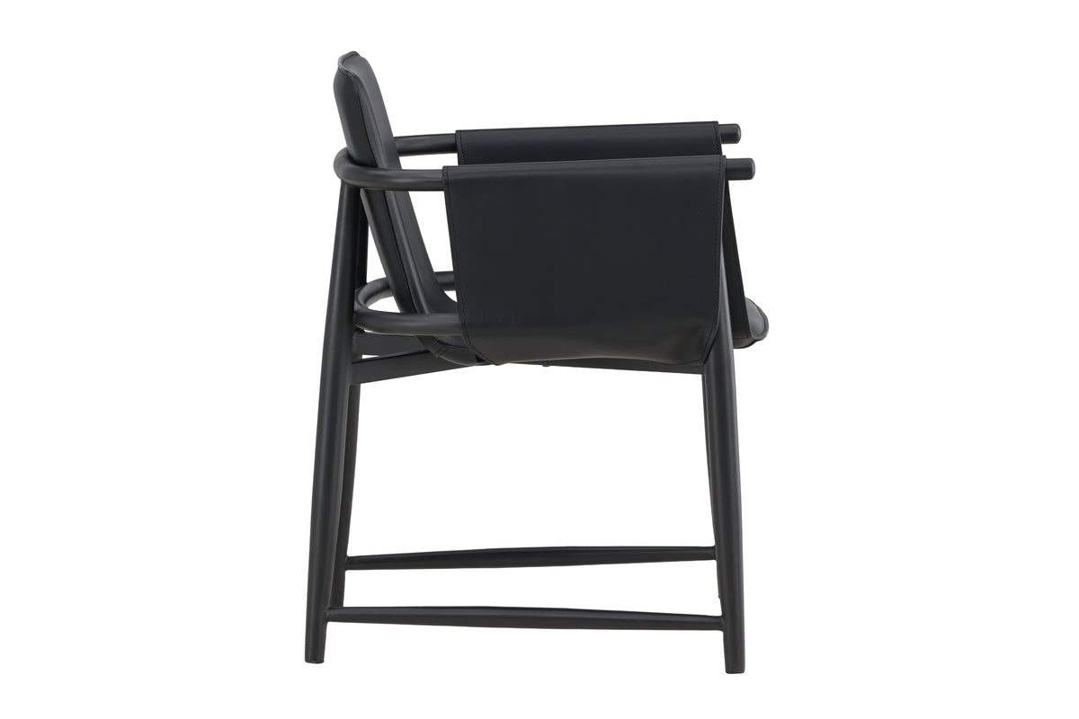 Säg hej till Bjäre, vår senaste tillskott med självsäker attityd och industriell karaktär. Den svarta finishen tillsammans med klädseln i PU ger stolen ett unikt och stilrent uttryck som passar lika bra i det moderna köket som i matsalen.